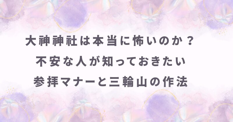 奈良の大神神社に行ってみたいと思って調べていると、 「怖い神社」「空気が重い」「生半可な気持ちで行く場所ではない」 そんなブログ記事やSNSの投稿を見かけることがあります。 そういう情報を目にすると、楽しみにしていた参拝なのに、 失礼なことをし... -