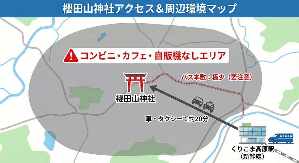 結論、櫻田山神社へ行くには「事前のタクシー確保」が重要です。