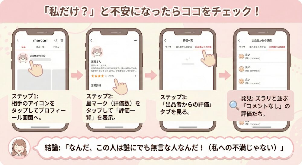 もし不安が残るときは、相手の「評価一覧」を見てみる