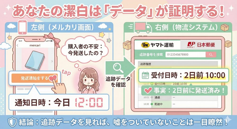 通知が遅れたことはミスですが、発送遅延の“嘘”には当たらないことを、データが証明してくれます。