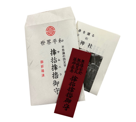 財布やポーチなどに入れて、気軽に持てる災難除けのお守りとして授与されています。